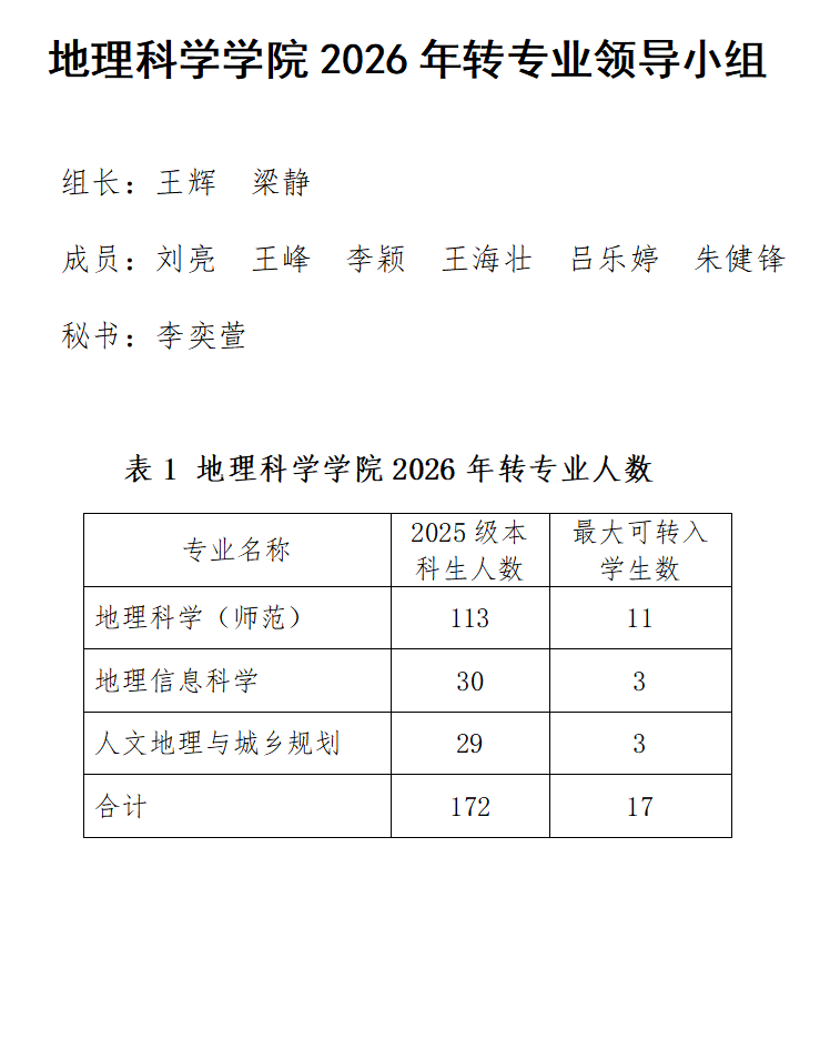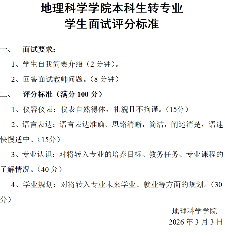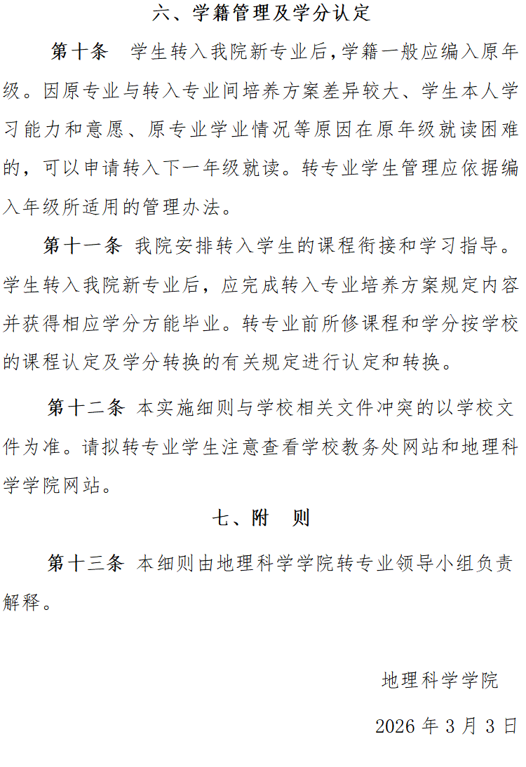 地理科学学院本科生转专业工作实施细则