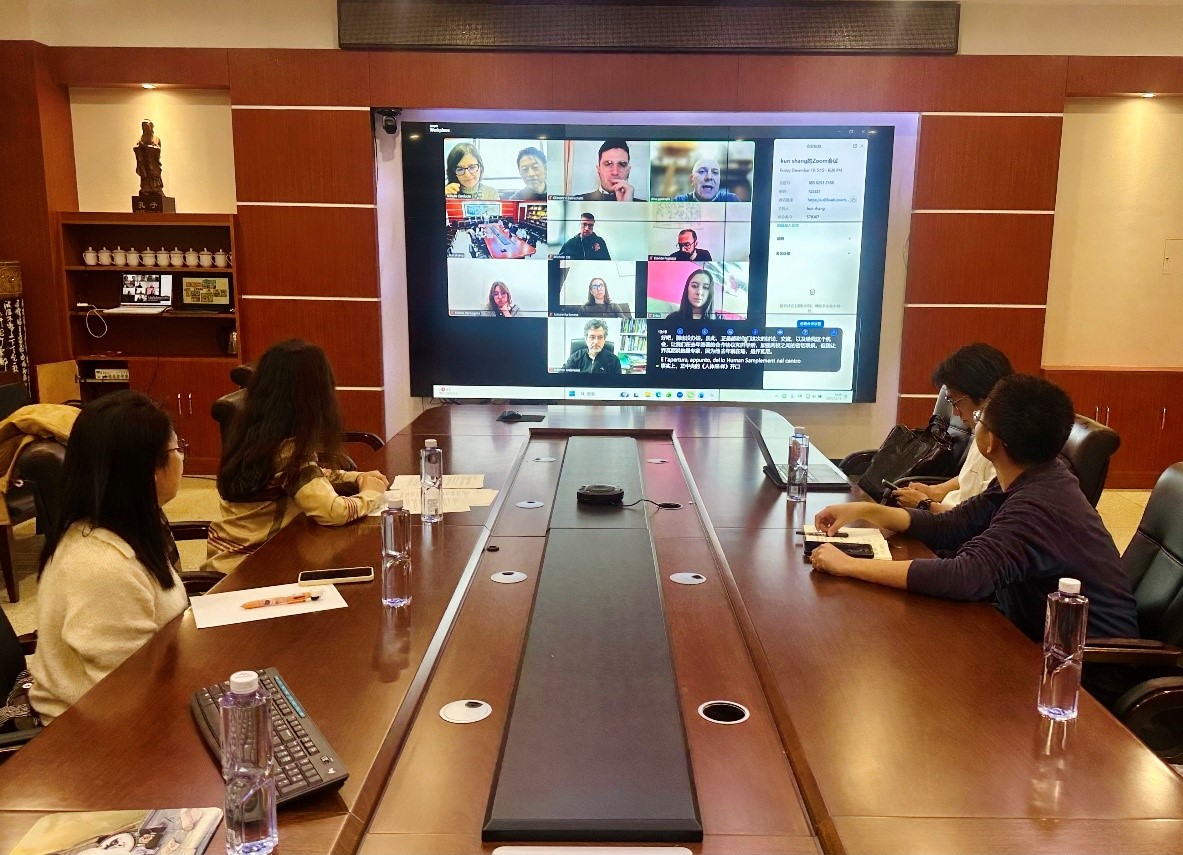 本次会议在意大利米兰国立大学孔子学院中方院长傅海峰院长的积极推动和精心组织下顺利举行。意方参会人员包括意大利米兰国立大学孔子学院理事会理事、地球科学系教授Dino Gavinelli教授、教师代表Giovanni Balocchetti、Roberto Ambrosini、Davide Fugazza、Antonella Senese,博士生代表Blanka Barbagallo、Erika和Michele DB等。中方参会人员包括辽宁师范大学地理科学学院院长王辉教授、副院长段冶副教授,金翠副教授,以及教师代表马晓婷博士、崔振琦博士和学院博士研究生代表等。
